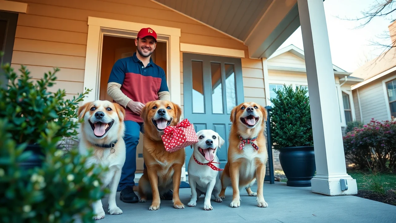 It was a bright, breezy Tuesday when Mike reached into his bag after ringing the doorbell. Instead of just dropping off the package, he pulled out a small, wrapped box and placed it gently on the porch. The dogs watched curiously, noses pressed to the glass door, as he scribbled a quick note: “For my favorite pups — enjoy this little surprise.”